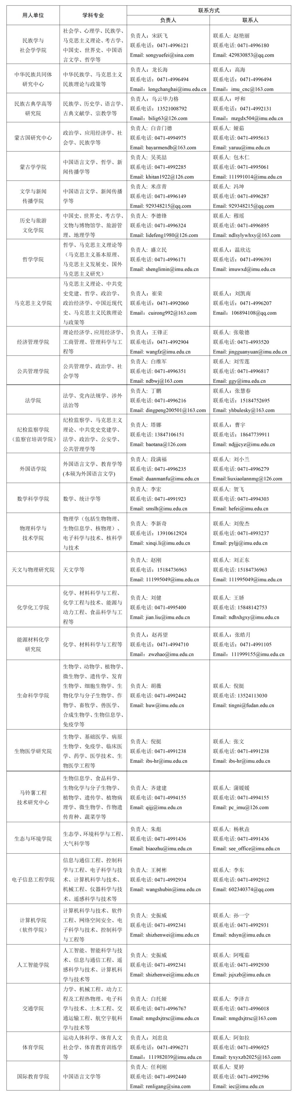 高层次人才招聘联系电话:0471-4993792(骏马计划) 0471-4992415(青年学术人才)